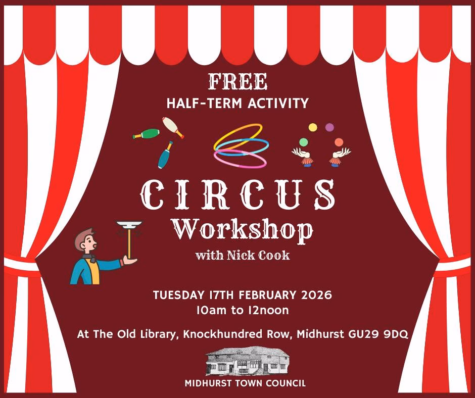 Midhurst Town Council’s free half term activity is a Circus Workshop.