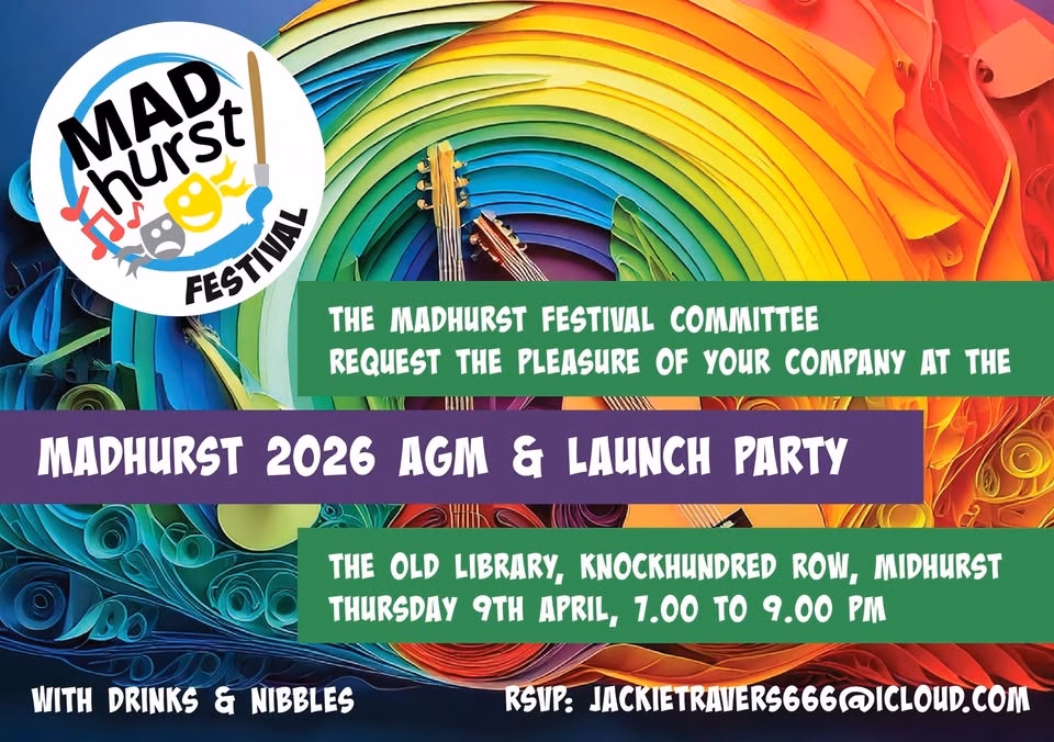 Come along to our AGM and Launch Party to hear all about what’s in store for 2026. From music and arts to community events, there’s plenty to look forward to as we continue celebrating everything that makes MADhurst so special, a volunteer-led, not-for-profit festival supporting our local community .
