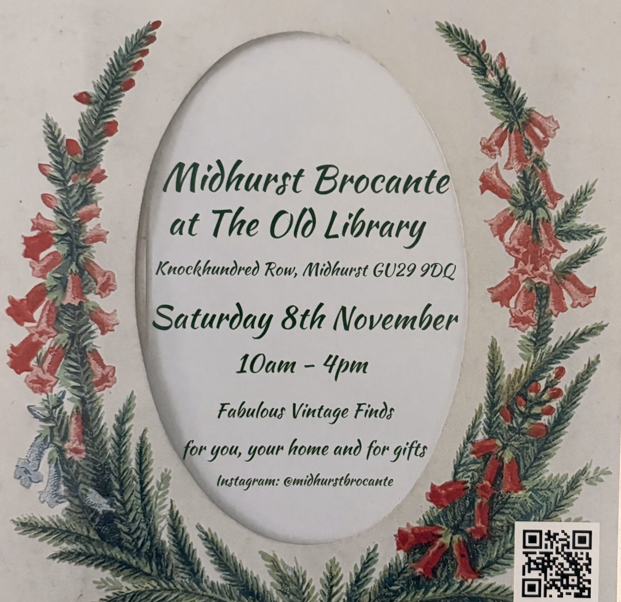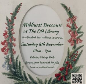 Midhurst Brocante Sat, Nov 8 10:00 am - 4:00 pm The Old Library, Midhurst Visit event website Add to calendar Google Calendar iCalendar Outlook 365 Outlook Live