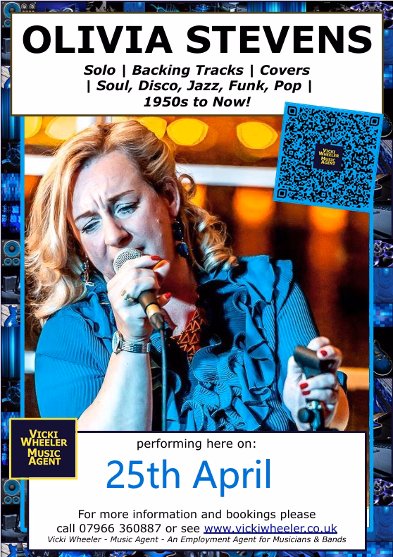 Olivia Stevens Plays @ The Bricks Sat, Apr 25 8:00 pm - 11:00 pm The Bricklayers Arms, Midhurst Add to calendar Google Calendar iCalendar Outlook 365 Outlook Live